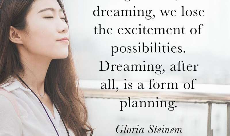 I just heard a relevant and thought-provoking Gloria Steinem quote that I wanted to share with you: "Without leaps of imagination, or dreaming, we lose the excitement of possibilities. Dreaming, after all, is a form of planning."